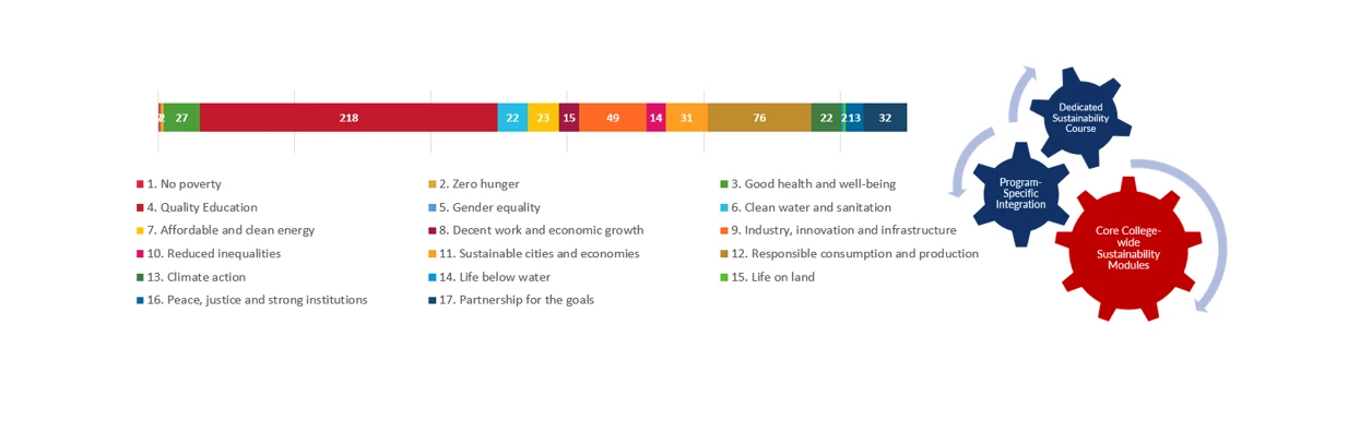 Full Curriculum Mapping and Institutional Commitment: To ensure institution-wide compliance, a comprehensive curriculum mapping process was executed in 2024. This established that 100% of all 218 academic programmes are explicitly mapped to the SDGs (full curriculum), confirming that sustainability is fully integrated across the entire university. Key alignments beyond the universal SDG 4 (Quality Education) include SDG 3 (Good Health and Well-being), SDG 12 (Responsible Consumption and Production), and SDG 17 (Partnerships for the Goals).